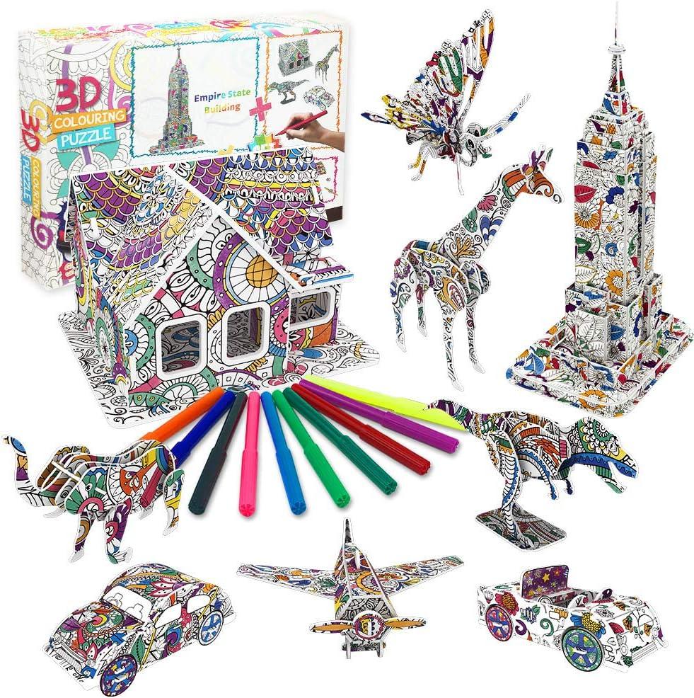 3D пазли для розфарбовування BYTOKI набір 9 моделей з фломастерами, дитячий креативний набір 5-12 років