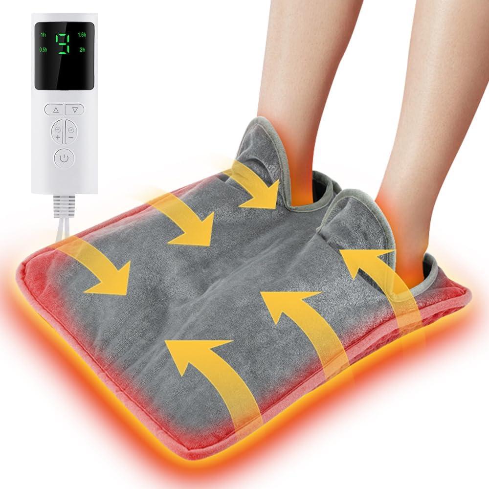 Електрична грілка для ніг з 9 рівнями температури, таймером, сірий фланель, для дому та офісу